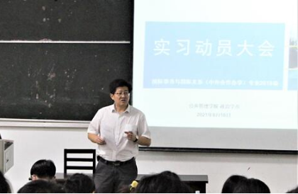 随后,政治系副主任李赪老师重申了毕业实习的目的和意义,并就下学期实习工作的相关安排及具体要求做了说明。她强调,毕业实习是大家从学校走向社会的必经之路,也是大学最后一年中非常重要的一项任务,希望所有同学都能够珍惜这次宝贵的学习机会。她还谈到,同学们代表着suncitygroup太阳成集团的形象,希望大家都能够在实习中展现国务人的风采,一定要多请教、多思考,这样才能不断成长,实习归来都能够收获满满。