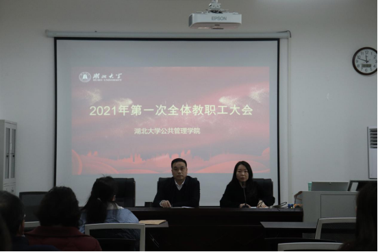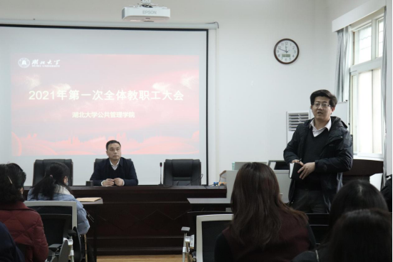 唐良敬传达学校干部大会精神,并结合学院近期重点工作提出四点要求:一是要进一步强化师德师风建设。全体教职工要在课堂教学、学术规范、自媒体管理等方面严守底线,落实好立德树人根本任务;二是要进一步加强人才队伍建设。通过引育并举,打造一支高水平人才队伍,力争产生一批有显示度的教学科研成果;三是要进一步营造良好的学院发展生态。全体教职工要强化主人翁意识、团队意识和责任意识,形成“人人都为学院做贡献”的良好氛围,提升学院的凝聚力和美誉度;四是要进一步强化员工教育管理。全院教职工要关心、关注员工成长成才,要以员工安全稳定、综合素质提升为基础,助力学院改革发展有序推进。