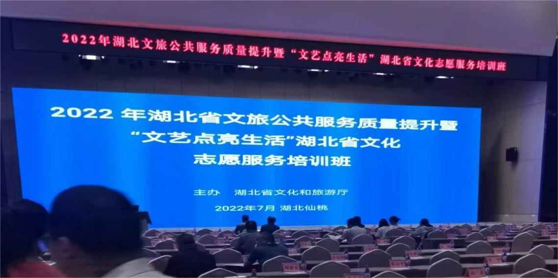 2022年7月9日,湖北省文旅公共服务质量提升暨“文艺点亮生活”湖北省文化志愿服务培训班在湖北仙桃召开,本次会议及培训由湖北省文化和旅游厅主办,会议旨在部署下半年全省文化和旅游服务重点工作,深入交流乡村文旅融合,提升公共服务质量。参加本次会议的有文化和旅游部公共服务司、全国公共文化发展中心、湖北省文化和旅游厅、省厅公共服务处,省群艺馆、市、州、直管市及神农架林区文化和旅游局及公共服务科(处)、旅游科(处)、文化馆(群艺馆)、各县(市、区)文化和旅游局领导等。