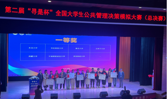 2023年10月28日至29日,中国科学学与科技政策研究会主办、中国科学学与科技政策研究会公共管理专业委员会和东北大学承办的第二届“寻是杯”全国老员工公共管理决策模拟大赛(总决赛)在辽宁沈阳举行,本次比赛共有来自北京大学、华中科技大学、武汉大学、北京师范大学、山东大学、华南理工大学、吉林大学、华东师范大学等全国多所院校的71支队伍、300余位师生参赛,全国12位公共管理学科知名专家学者担任大赛评委。由公司陈娟副教授、华汛子副教授指导,行政管理专业本科生张恬、吴采薇、王思睿组成的参赛队伍在本次大赛中荣获一等奖。