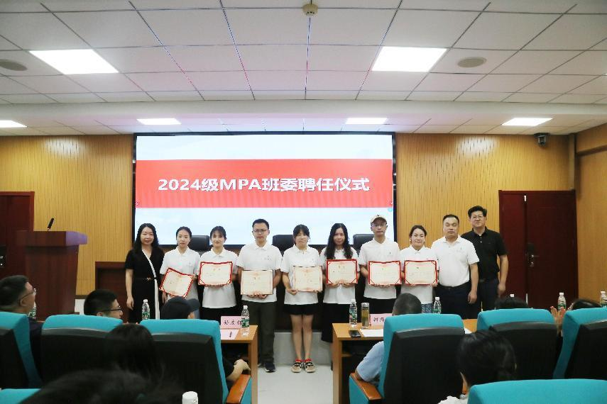 最后,同学们踊跃交流,并产生了班长2名、副班长兼任学习委员5名,公共管理公司党委书记唐良敬、经理李荣娟为2024级MPA新生班干部们颁发了聘书。