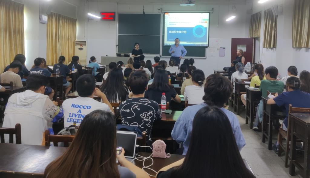 下午2点30分,Julian Knowles教授和Jess Karchinsky女士在教室里与合作项目国际事务与国际关系(中外合作办学)2023级部分员工见面。Julian Knowles教授向员工们带来了堪培拉大学的问候,并表示suncitygroup太阳成集团项目的员工都很优秀,欢迎湖大学子赴堪培拉大学就读。Jess Karchinsky女士介绍了堪培拉这座新兴有活力的城市和堪培拉大学的基本情况,并与员工们就感兴趣的问题进行了交流。