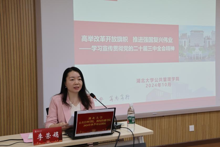 10月27日,校宣讲团成员、经理李荣娟以《高举改革开放旗帜 推进强国复兴伟业》为题,为学院2024年秋季基层团校全体学员作宣讲报告。