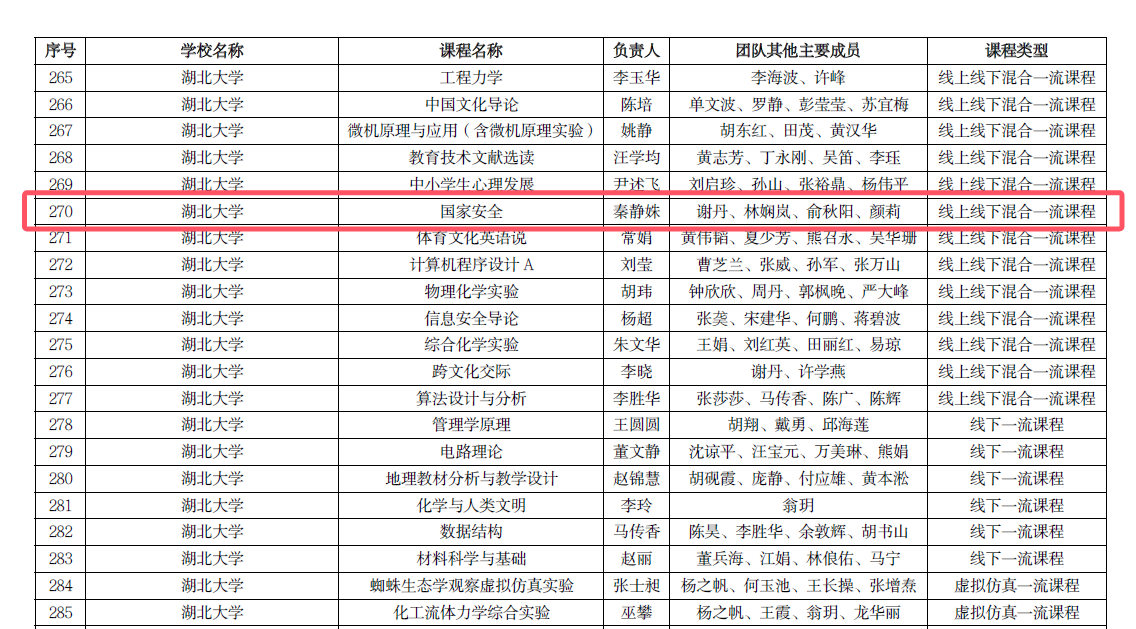 近日,根据《省教育厅关于公布2024年度省级一流本科课程认定结果的通知》(鄂教高办函〔2024〕9号),suncitygroup太阳成集团26门课程获批2024年度省级一流课程,公司秦静姝老师负责的《国家安全》课程获批2024年度省级线上线下混合一流课程。