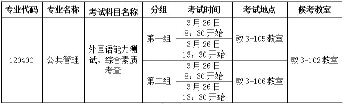2.按照招生计划和复试分数线要求,凡报考公司且满足学科(专业)、类别(领域)的单科和总分达到相关分数线的考生可进入专业复试,公共管理专业(专业代码为120400)复试名单详见学院网站。