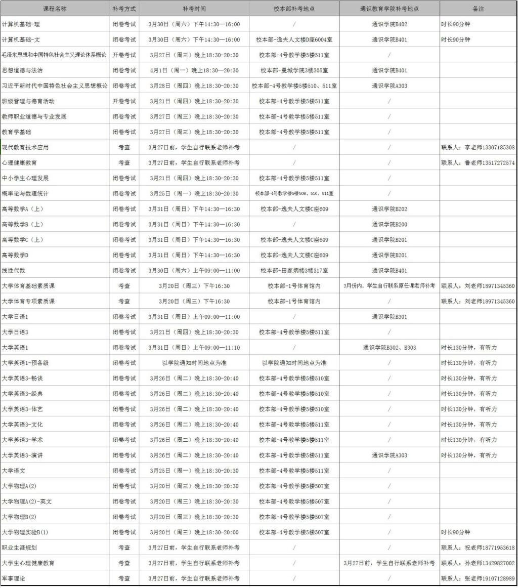 2023-2024学年度第二学期补考报名工作现已结束,根据考生补考报名情况,现将有关补考安排通知如下: