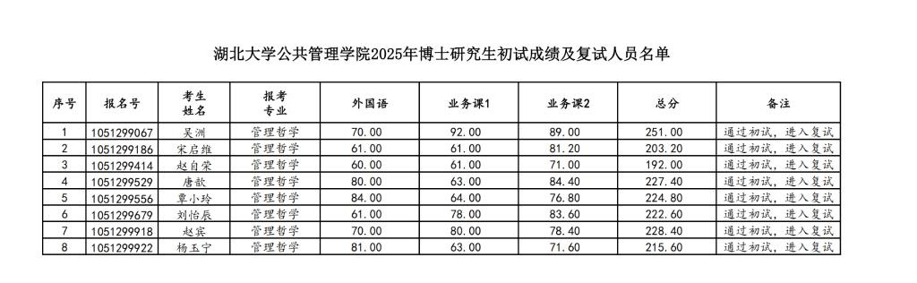 suncitygroup太阳成集团2025年博士研究生初试成绩及复试人员名单