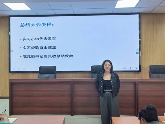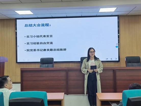 随后,13个实习小组的同学依次上台分享实习心得体会。同学们围绕着实习阶段的工作内容、遇到的困难、收获的经验、获得的成长等话题展开交流,大家情感真挚,相互感染,现场不时响起热烈的掌声。