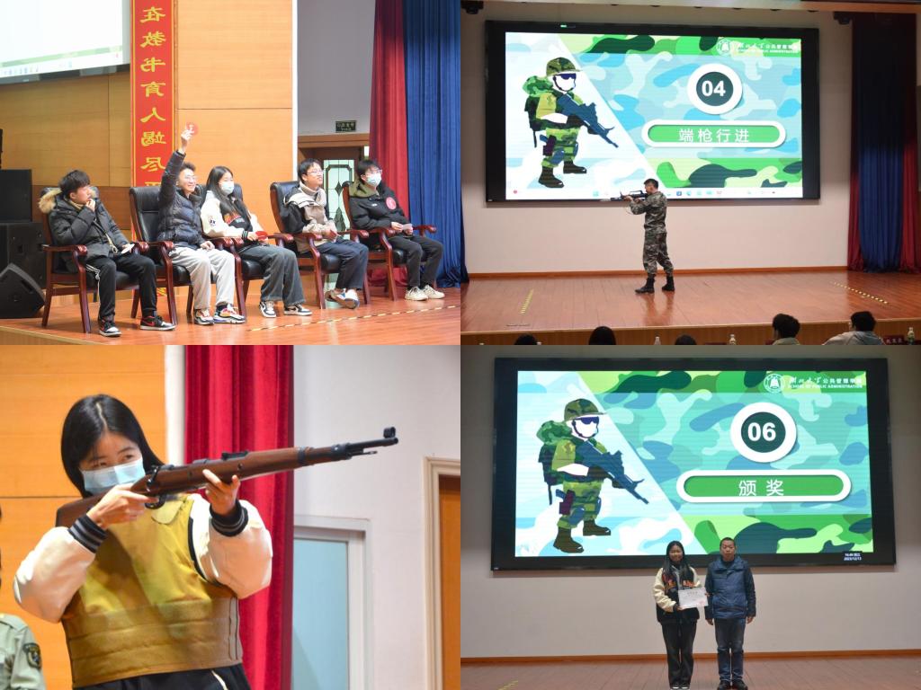 来自全校的14名选手经过初赛成功晋级决赛。决赛分为小组合作答题、知识抢答、端枪行进、射击打靶四个环节。整场比赛气氛紧张,比拼激烈,选手们沉着应对,冷静答题。经过角逐,2023级汉语言文学(师范)专业王亚欣同学夺得比赛冠军。