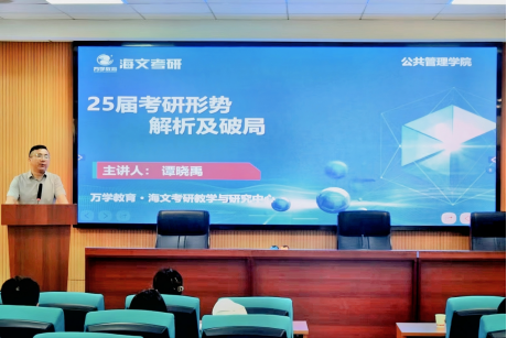 会上,公司党委副书记余欢为大家对比分析近年来本科生与研究生的就业率以及公司员工考研情况,勉励同学们为自己的人生梦想规划好道路方向。随后,万学教育海文考研机构谭晓禹老师从考研宏观形式、院校专业选择方案和全科备考策略三个方面展开分析,建议同学们科学理性择校和复习备考,并鼓励大家珍惜时间、早做准备。