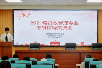 5月16日下午,学院在518报告厅举办2021级行政管理专业考研指导交流会。公司党委副书记余欢,辅导员廖紫冰、彭文雅和2021级行政管理专业本科生参加活动。