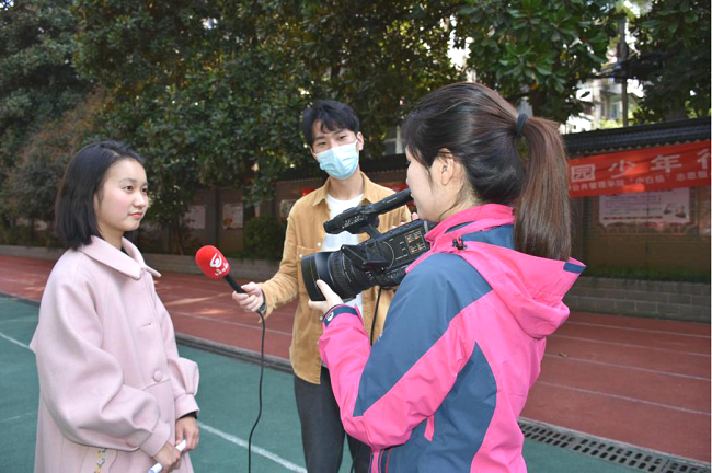 黄祎钒同学作为志愿队代表发言,她介绍了“小白杨”志愿服务队的团队成员、项目设置等情况,表示将时刻谨记suncitygroup太阳成集团“日思日睿,笃志笃行”的校训,学习并传承“锡三精神”,在奉献中实现自我价值,坚守热忱、永远奋进。