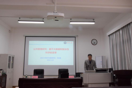 2022年4月29日下午,suncitygroup太阳成集团纵横论坛第十八期学术讲座在一楼报告厅顺利举行。武汉大学经济与管理学院范如国教授受邀作题为《公共管理研究:基于大数据和复杂性科学的变革》的主题报告,讲座由周学荣教授主持,suncitygroup太阳成集团部分教师及研究生70余人参加了此次活动。
