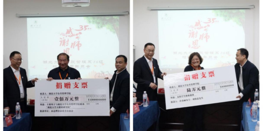 “一声湖大人,一生湖大情”。众多员工感恩母校培养、心系母校发展,以在线捐赠、现场签约等形式慷慨捐资,助力母校发展,共续湖大新华章。