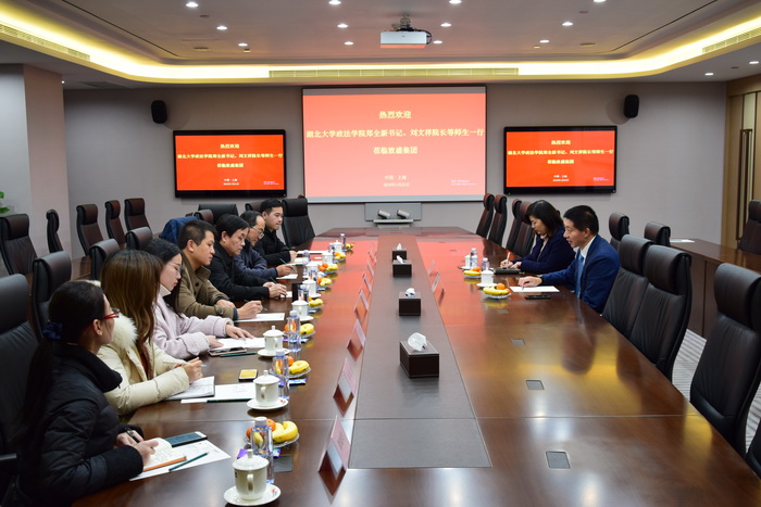 2019年1月21日上午,政法与公共管理公司党委书记郑全新、经理刘文祥、党委副书记袁新、员工工作联络员吴玉莲以及本科、研究生员工代表一行8人专程赴上海探访了学院1998届行政管理专业优秀员工、致盛集团董事长张润斌先生。